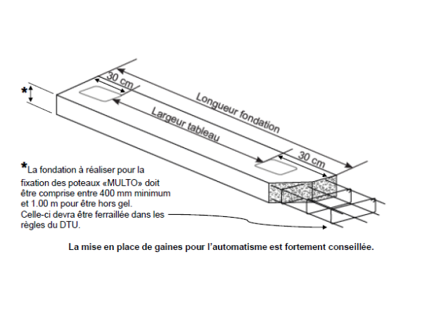 *La fondation à réaliser pour la fixation des poteaux «MULTO» doit être comprise entre 400 mm minimum et 1.00 m pour être hors gel.